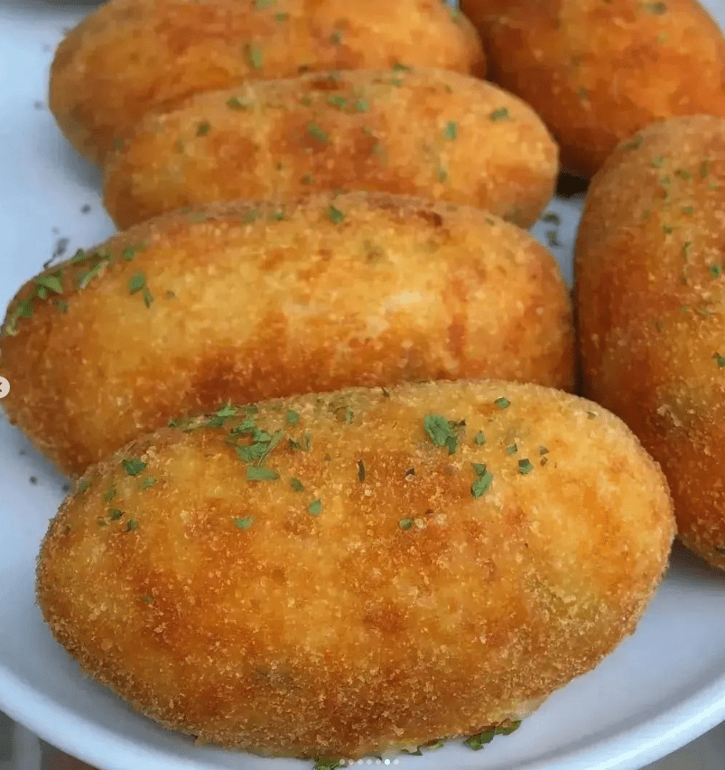 dois ovos batidos e na farinha de rosca ou linhaça.